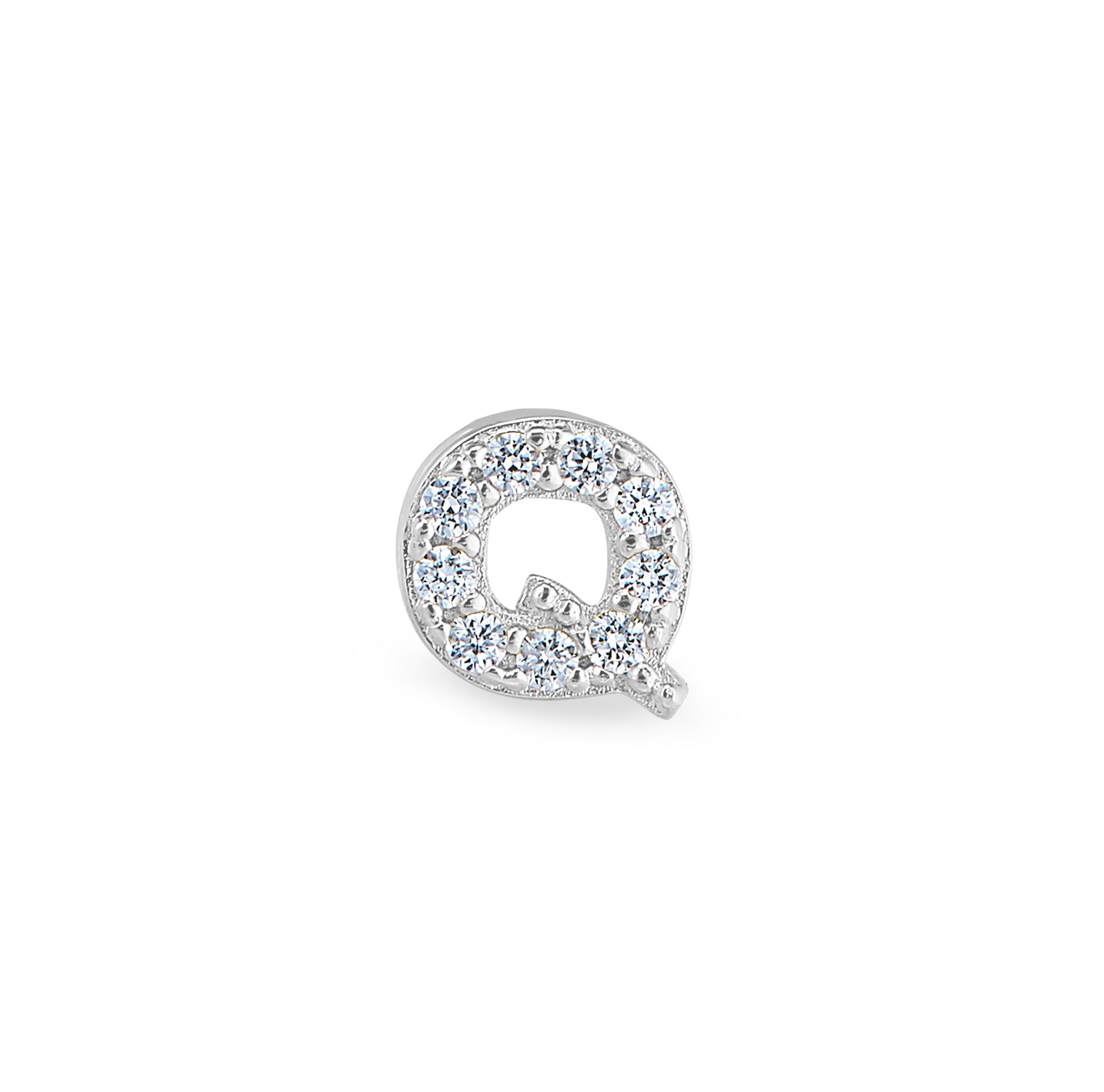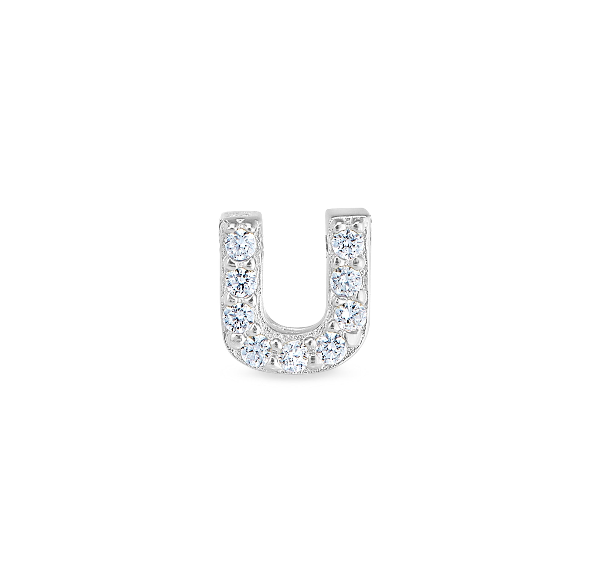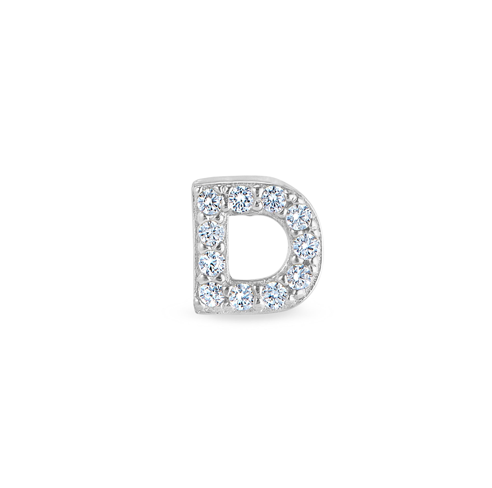 Create a personalized stackable style with our platinum finish sterling silver initial charm. Letter A, adorned with micropave simulated diamonds, adds elegance. Perfect for customization and gifting.