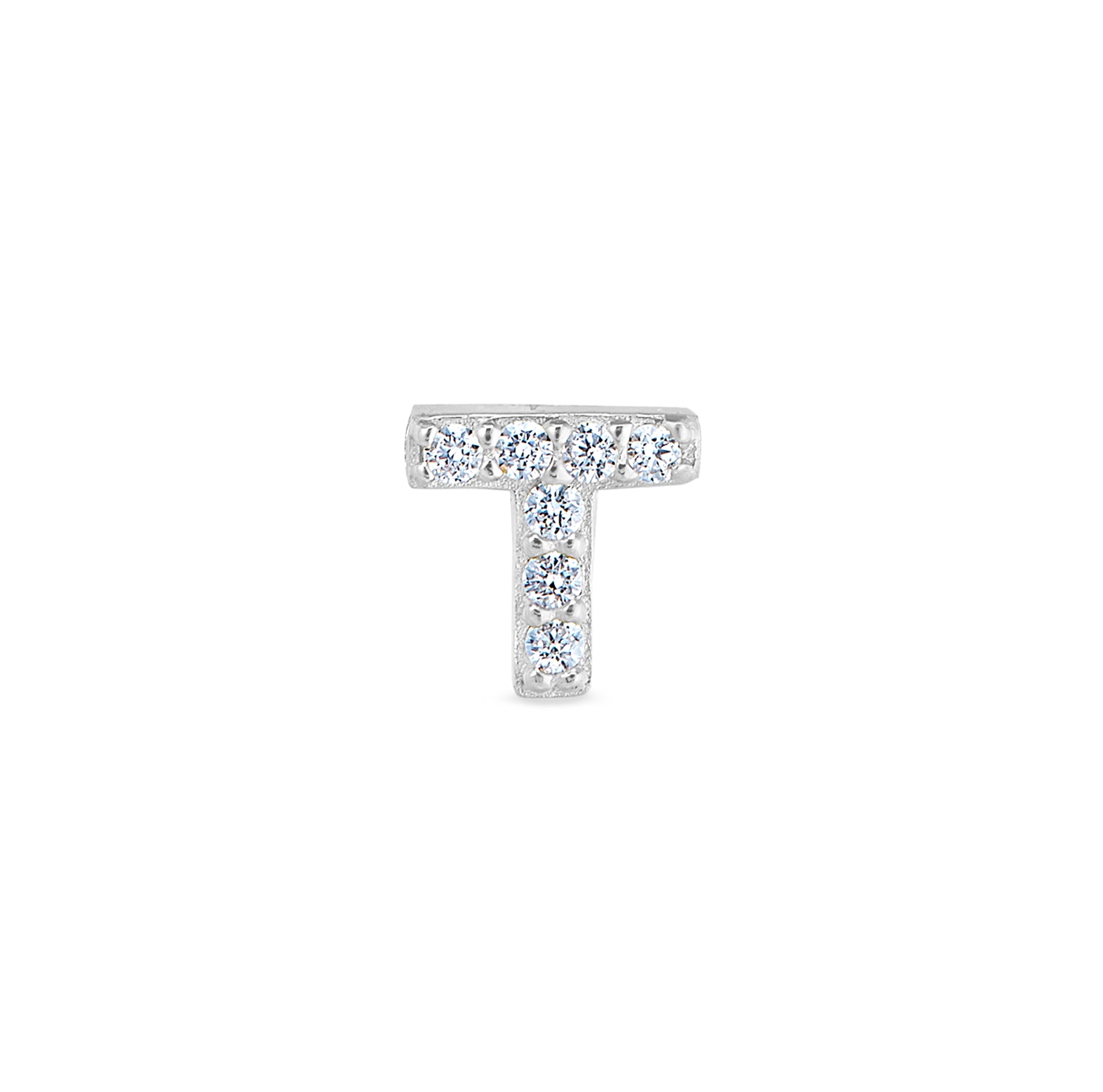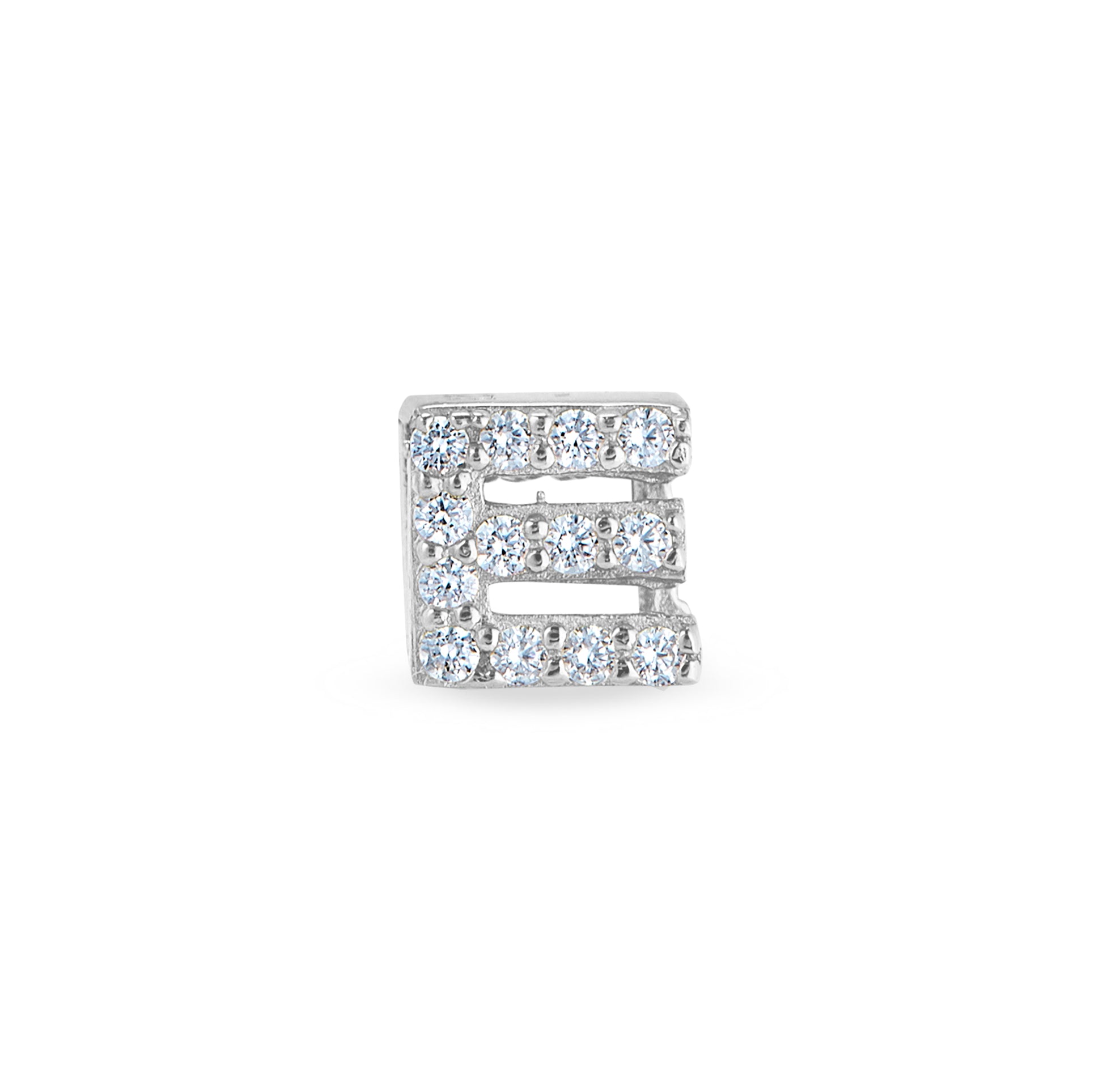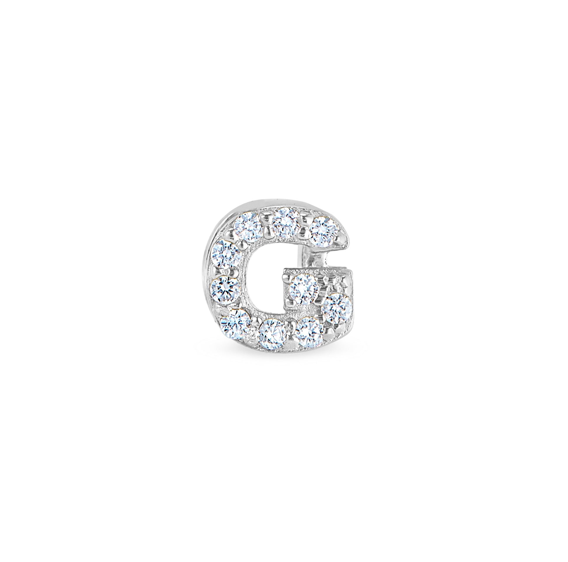Create a personalized stackable style with our platinum finish sterling silver initial charm. Letter A, adorned with micropave simulated diamonds, adds elegance. Perfect for customization and gifting.