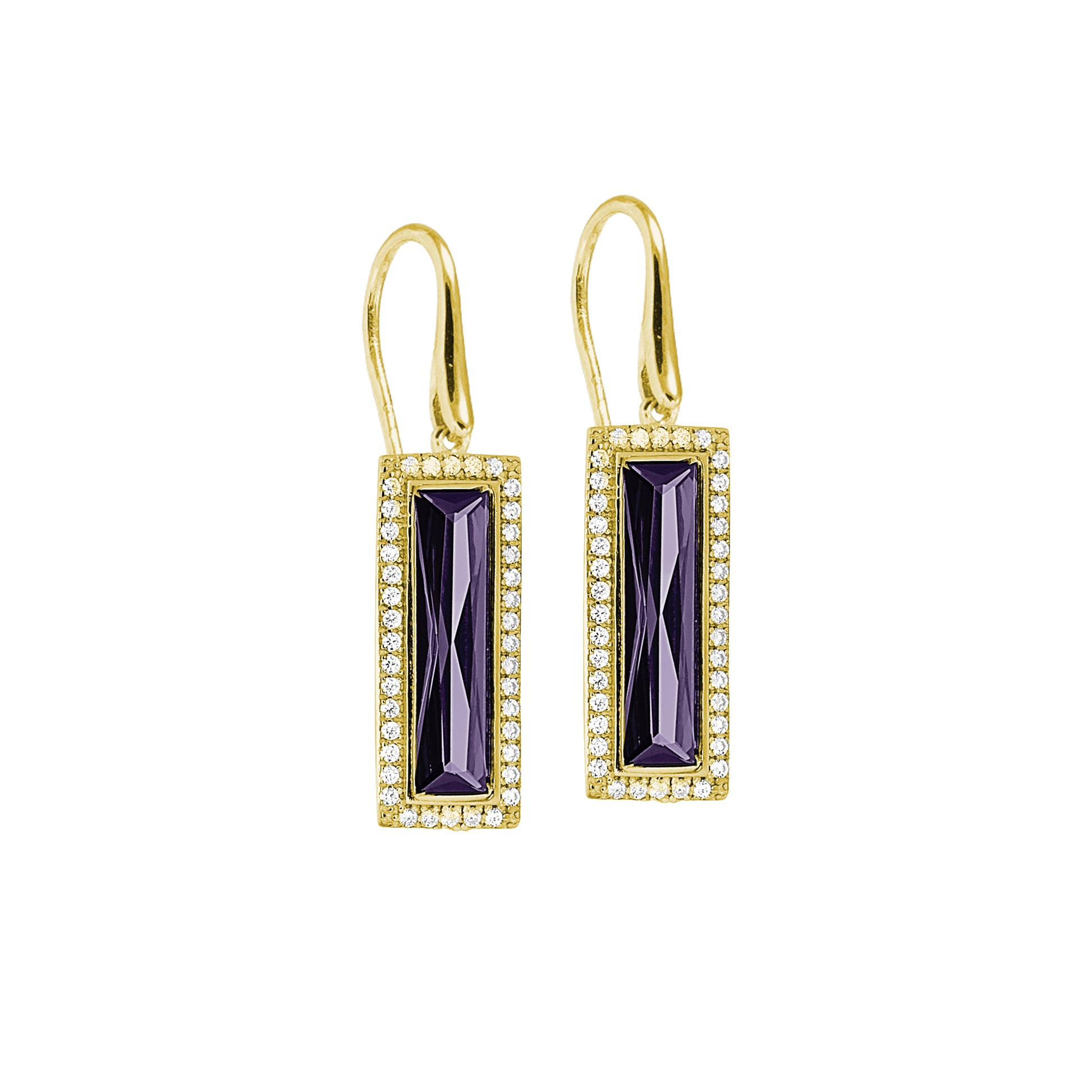 Rectangle Birthstone Drop Earrings - February