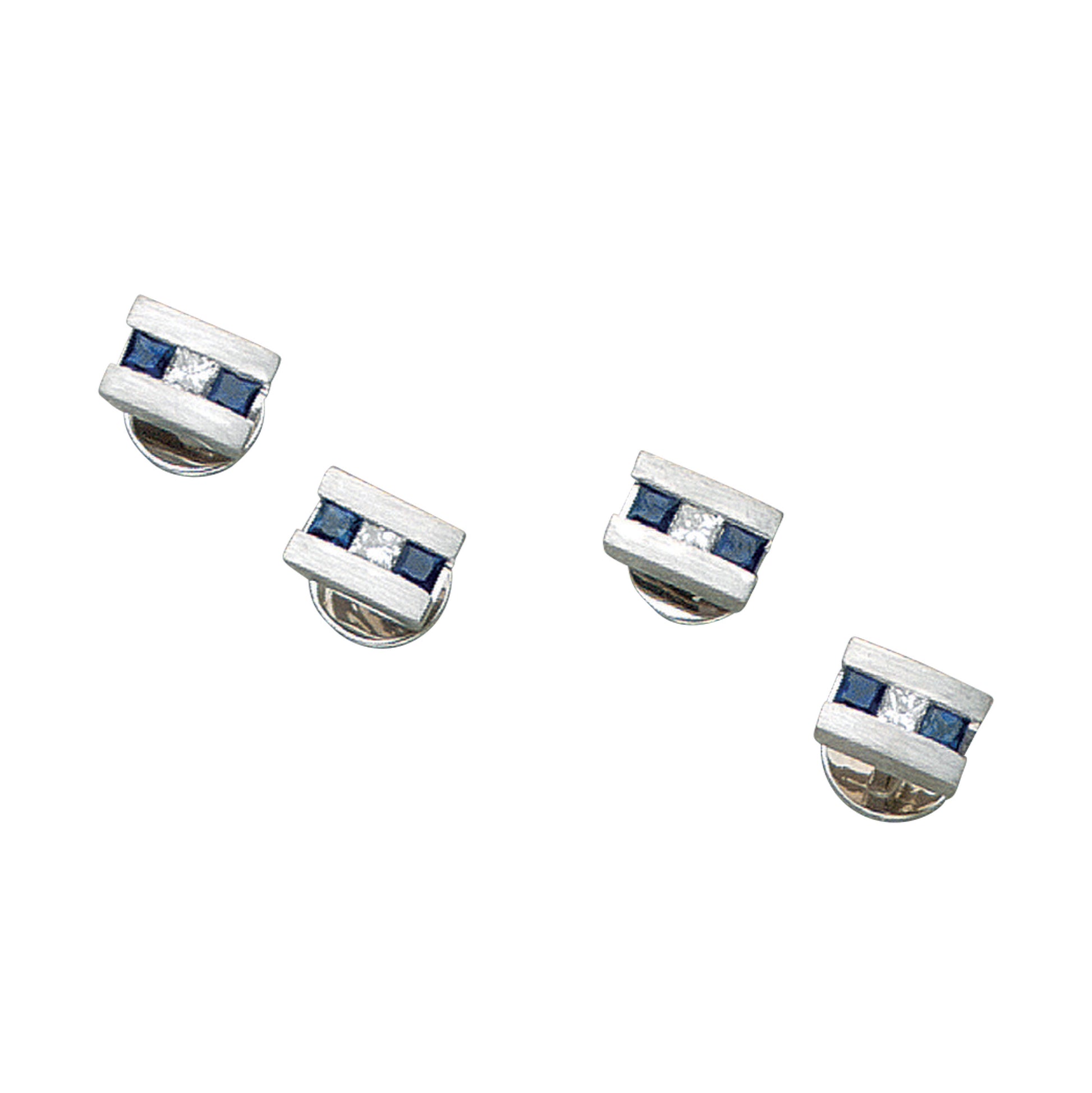 Elevate your look with our 14k white gold rectangle stud set, featuring polished edges and a central line of .68 cttw diamonds with 1.5 cttw genuine sapphires. These luxurious studs blend elegant design with vibrant color and sparkle for a sophisticated, eye-catching finish.